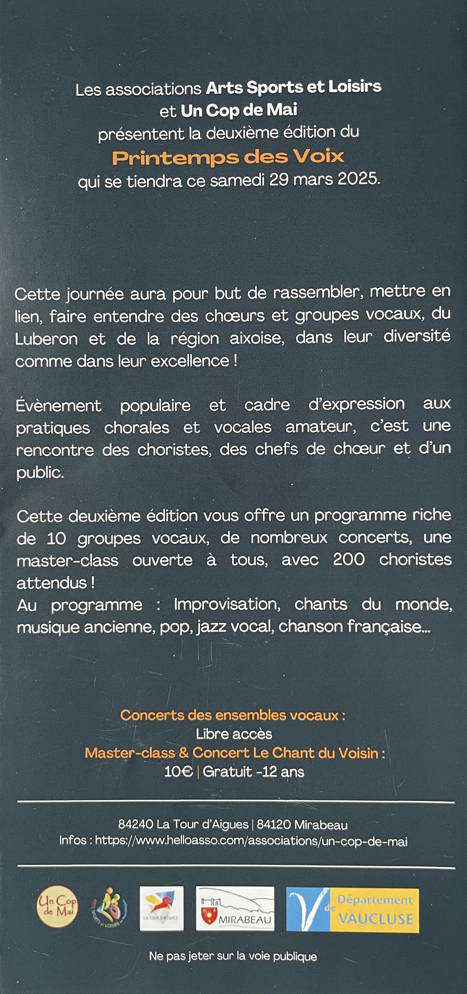 Le Printemps des Voix - La Tour d'Aigues (84) - 29 mars 2025